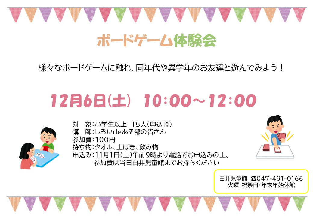 12月6日(土)に開催予定の【ボードゲーム体験会】のお知らせです。