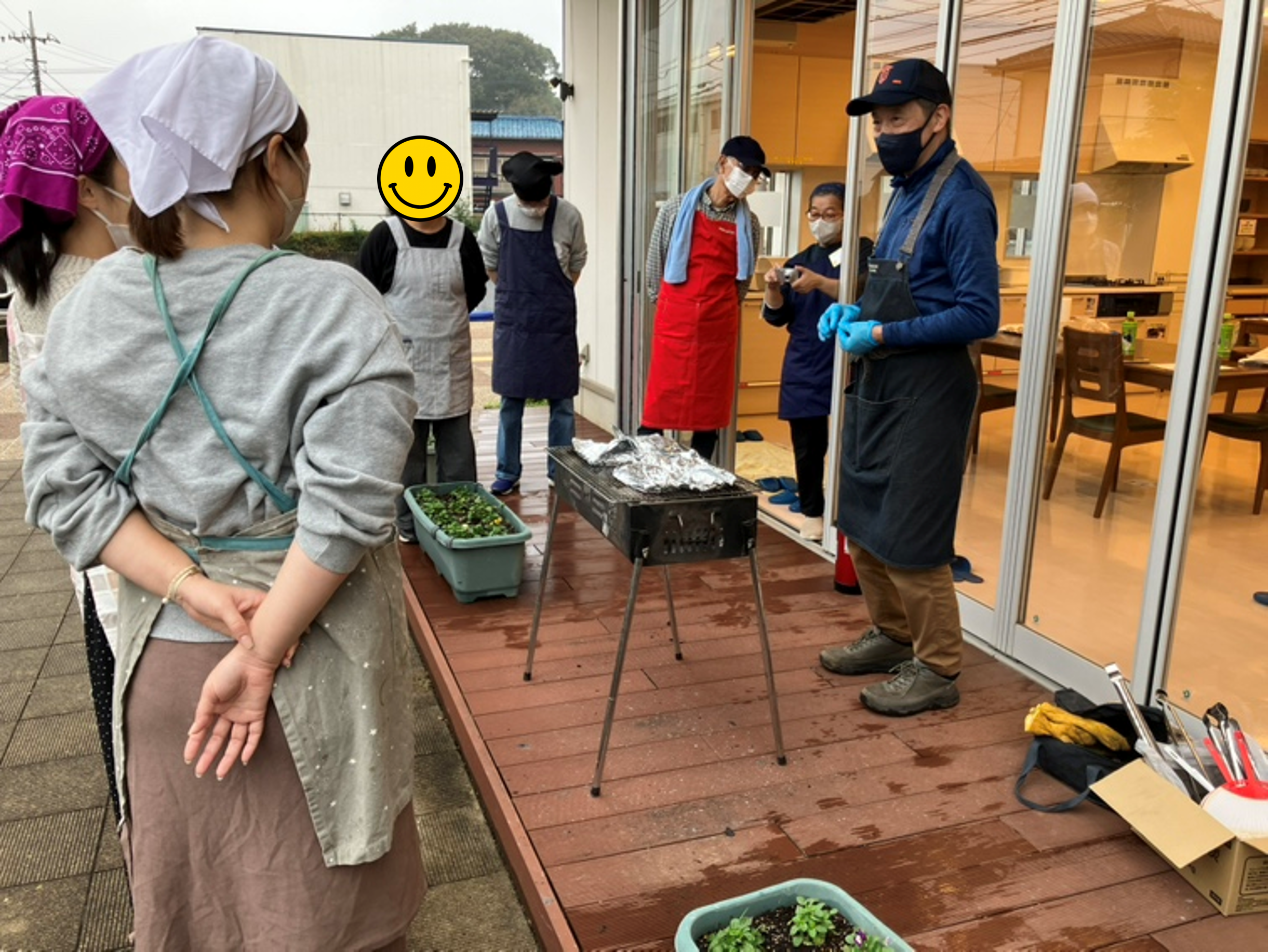 テラスにBBQコンロを設置し、炭火での調理を体験しました。